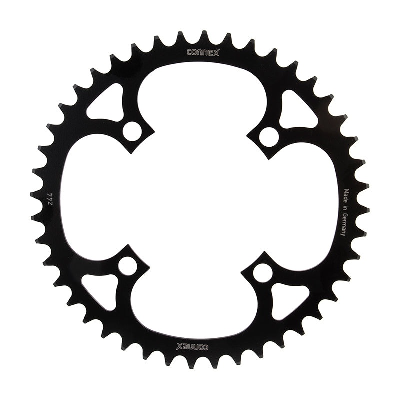 Precision manufacturing and special hardening processes make these replacement e-Bike chainrings extremely durable Black KTL-coating Suitable for: 1/2 inch x 3/32 inch and 1/2 inch x 11/128 inch Made in Germany TECH SPECSring typesinglemount4x104mmteeth44t