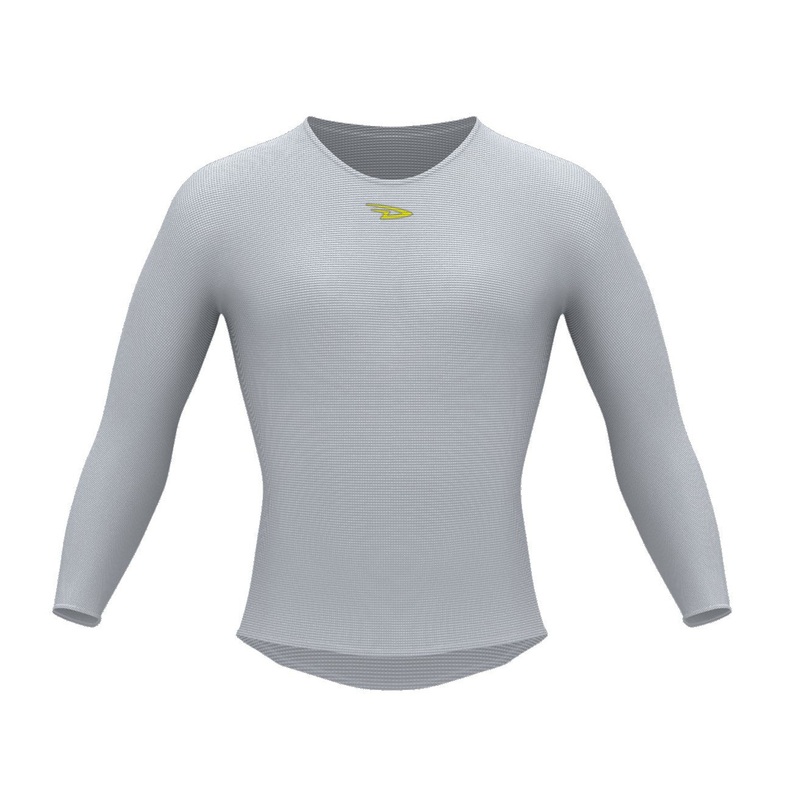 Thin and form fitting Thermal properties keep you comfortable on cool descents 100% polyester Measure around the fullest part of the chest, under the arms, and including shoulder blades TECH SPECScolorwhitesizeS (34-37")