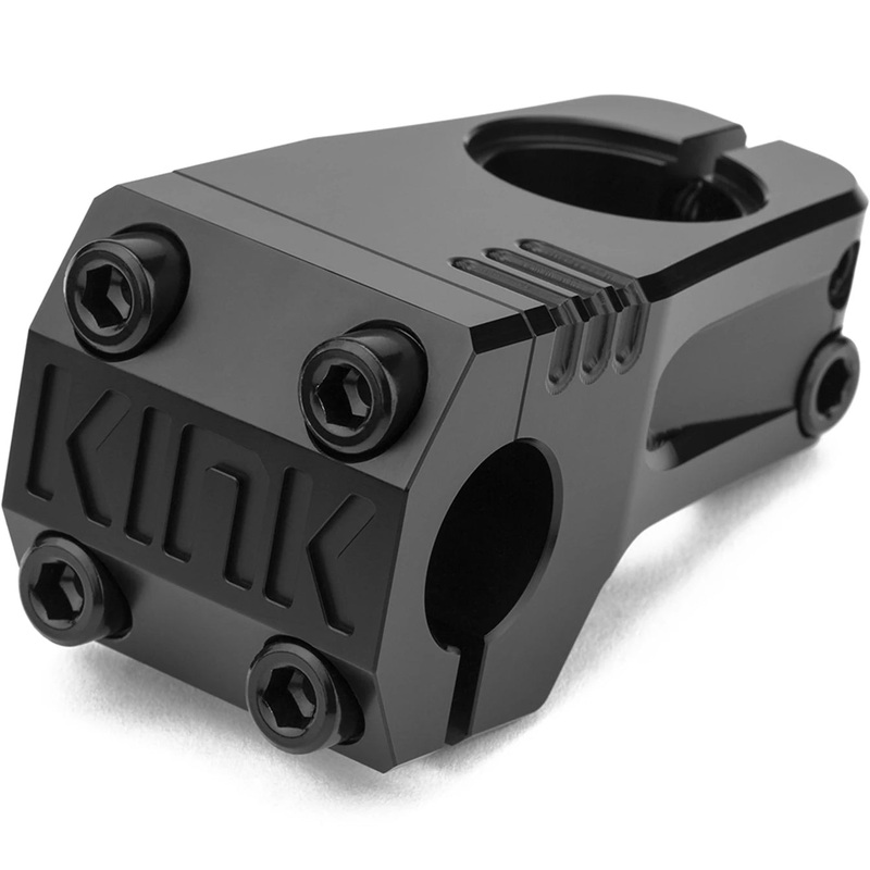 TheKink Track stemisCNC machined from 6061-T6 aluminum and features a slightly contoured body profile, relieved outer walls to shave off some of the weight, an engraved KINK logo in the cap, and a recessed fork cap bolt design for a clean look. Instead of tightening the stem cap down in the traditional star pattern, the top two bolts tighten down fully first, giving the top of the stem a totally clean and flush look, before tightening the lower two bolts down.