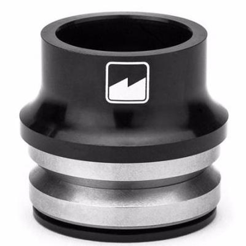 The Merritt High Top Integrated Headset includes a 6061 aluminum top cap (20mm tall) with laser-etched Merritt logos, two precision sealed bearings, and an aluminum compression ring.