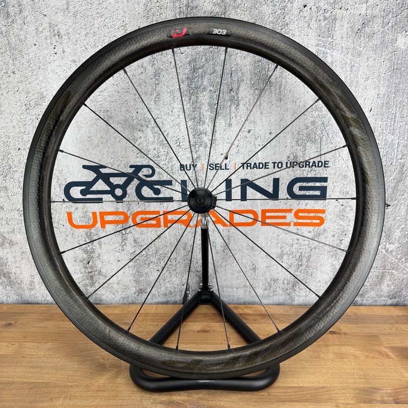 Brand: Zipp 303 FirecrestRims: 45mm deep carbon rims, 28mm external width, 17mm internal width. Clincher compatible.Hub: Zipp 77 hubAxle spacing:QR x 100mmCosmetic Condition: This wheel is in mint condition. There are no imperfections to specifically pictu