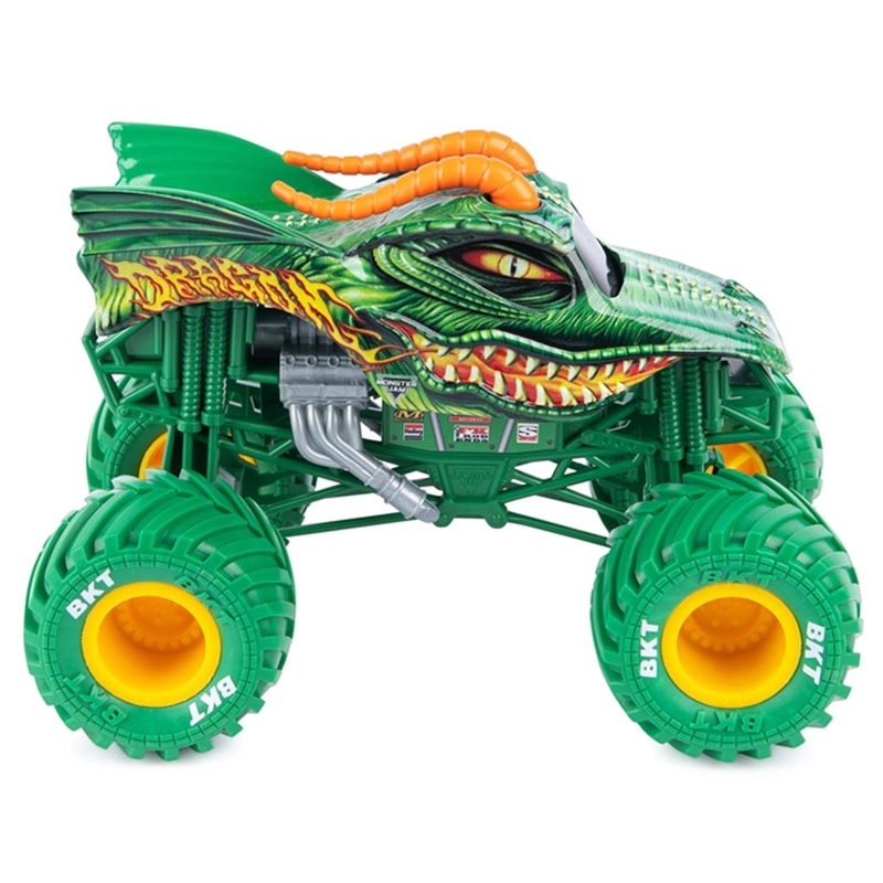 The Monster Jam Dragon Die-Cast Monster Truck at J&R Bicycles is an authentic replica with lifelike details for monster sized fun just like the original. This 1:24 scale die-cast monster truck toy features a working suspension to absorb the impact of crash