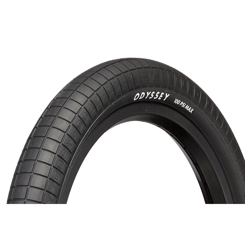 The Odyssey Aaron Ross V2 BMX Tire is the latest version of the Aaron Ross signature tire. It features an updated block tread, bigger sizing, and has a dual ply casing. The uniform block tread is reminiscent of his original tire, but freshened up.