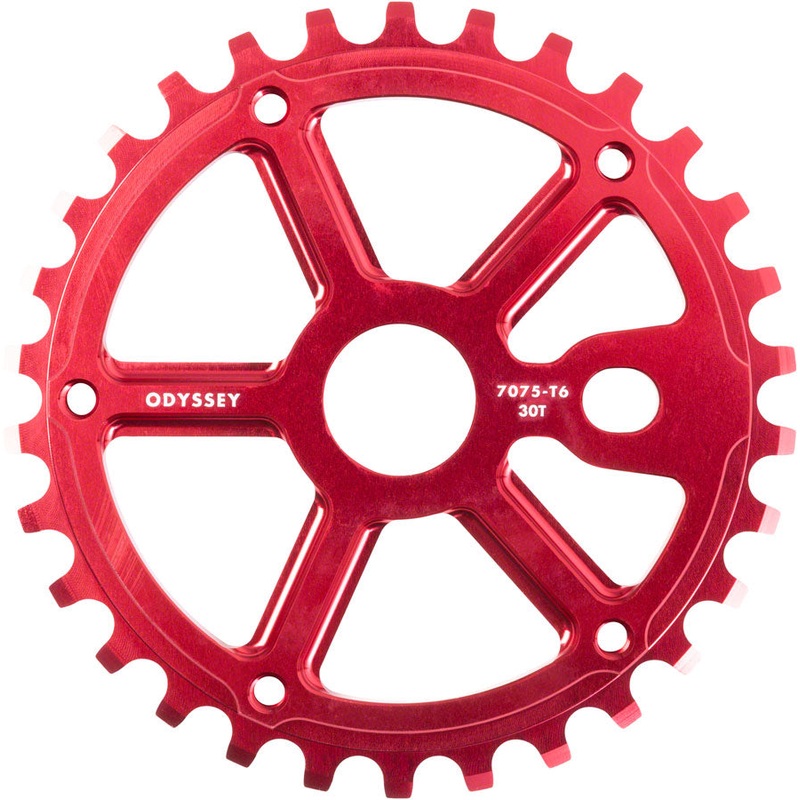 Odyssey Utility Pro Sprocket (No Guard) - 30t Anodized Red. Odysseys Utility Pro 30t sprocket.CNCd 7075 aluminumCompatible with all BMX chains*Not compatible with Odyssey Utility Pro Guard TECH SPECSBore 24mmColor RedDefined Color RedInterface Bolt DriveMa