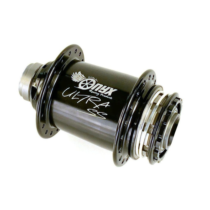Onyx Ultra SS OX hubs a madeto the tightest tolerances on the planet. Usingsprag internals for strength, extremely low rolling resistance and infinite points of engagement. Ceramic hybrid bearings 7075 Aluminum Hub Shell Adjustable Preload Titanium bolts E
