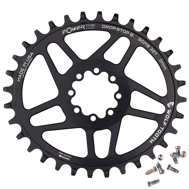 • Wolf Tooths patentedDrop-Stop wide/narrow tooth profile for the ultimate chain retention and mud-shedding ability