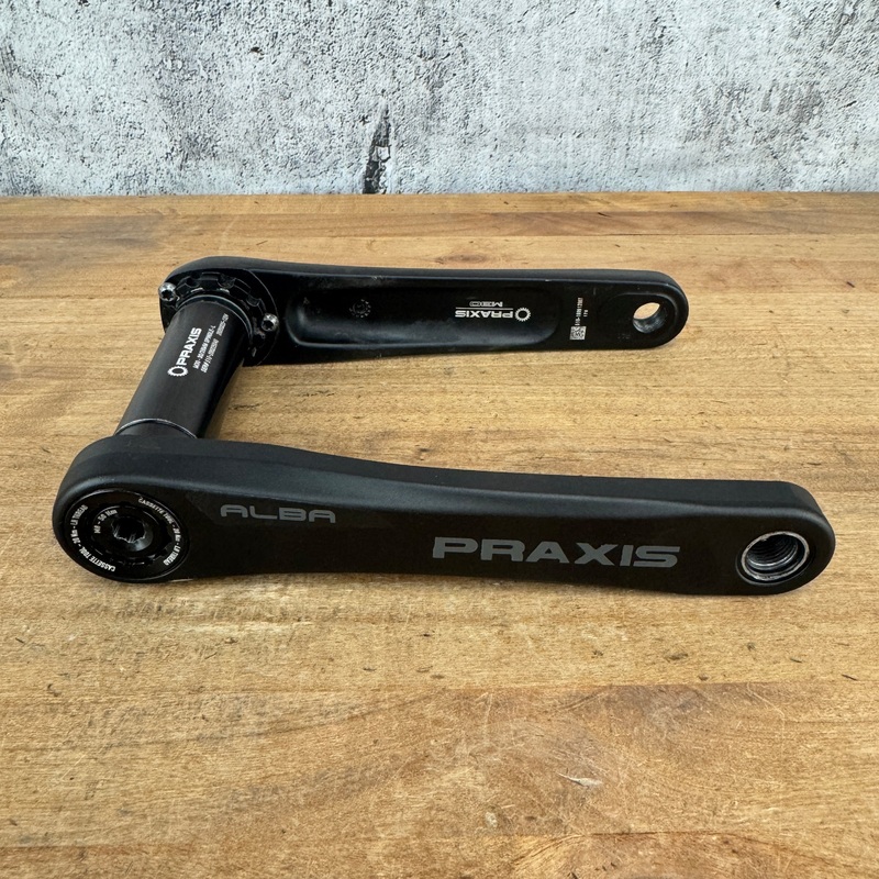 Brand/Model: PraxisWorks Alba M30 AlloyMaterial: AlloyCrank Arm Length: 175mmSpindle:30mmCrank Arm Mount Type: Sram 3-Bolt Direct MountWeight: 545 gramsCondition: Very light scratching and shoe rub on the crank arms. Also, please reference the listing phot