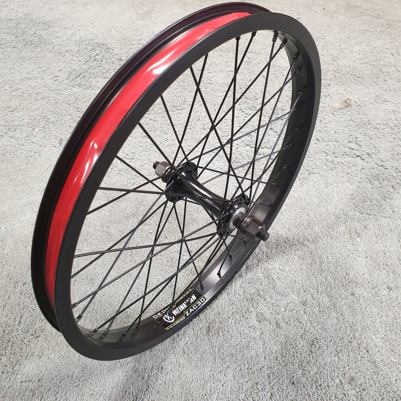 Premium Solo 18 Inch Front WheelUnsealed 10mm front hub laced to Weinmann ZAC30 single wall rim