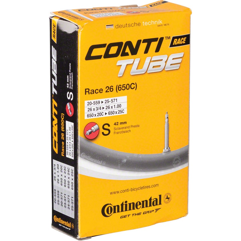 Continental standard weight presta valve tube is a great choice for everyday cycling.FEATURES:Seamless and mold cured constructionPresta and Schrader valves are threaded full lengthPresta and Schrader have removable valve coresSPECS:Labeled Size:650 x 18-2