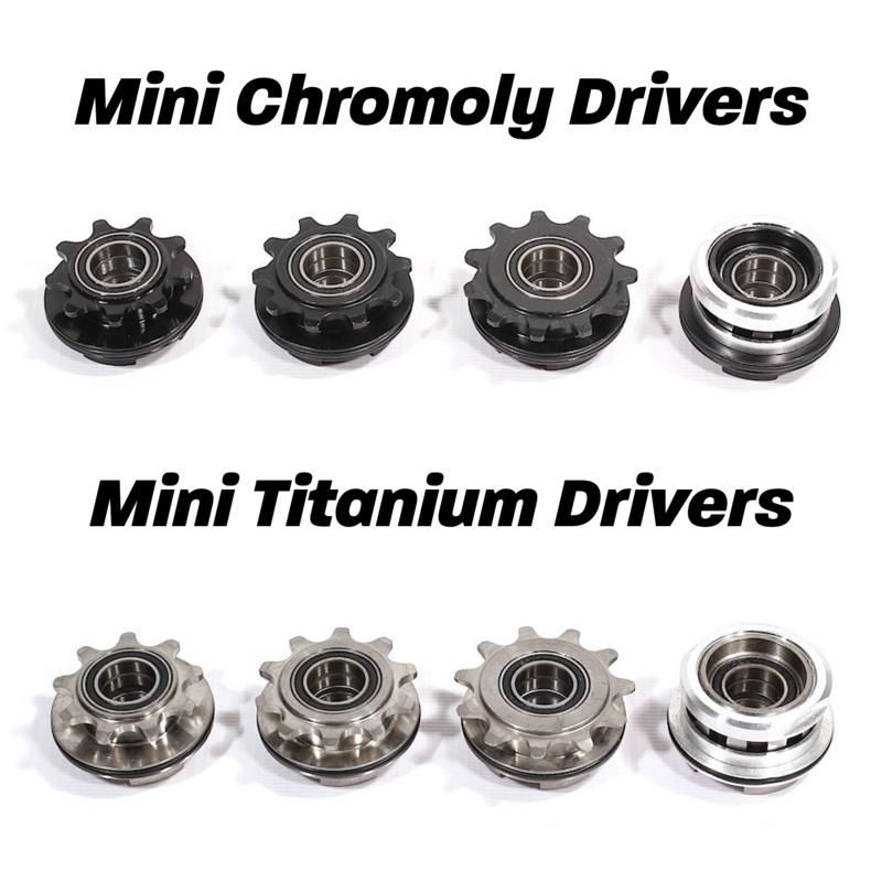 Profile Mini hub Drivers. Read below to pick the type you need.9t , 10t, & 11t tooth drivers are for 1/8 width chains.-9t RHD/LHD-10t RHD/LHD-11t RHD/LHD-Splined RHD/LHD (for Profile splined cogs & includes lockring w/ spacer)Pawls and springs not included