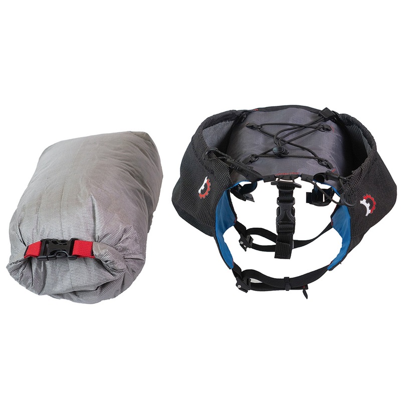 Removable Ultra 200 dry bag Stretch woven side pockets offer convenient storage (1L each) Top bungee cross for stashing layers Laser cut drain holes Field replaceable cords Front stabilizer that can be removed when not necessary Slotted mounting accommodat