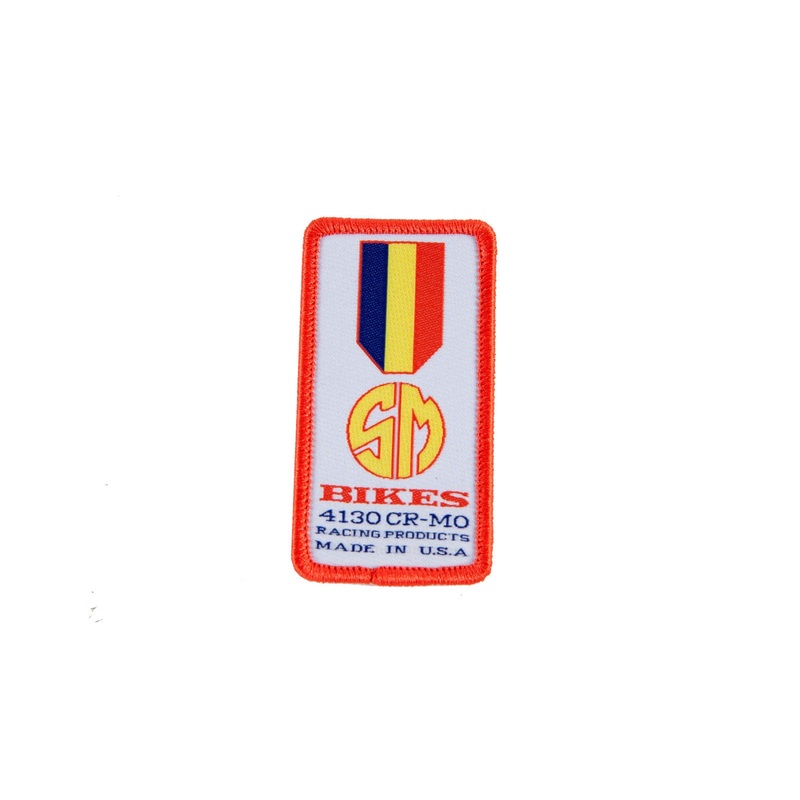 Woven version of the logo seen onthe S&M Made in USA Retro Motocross handlebars. Perfect for your race jersey, or any other garment, hat or bag.