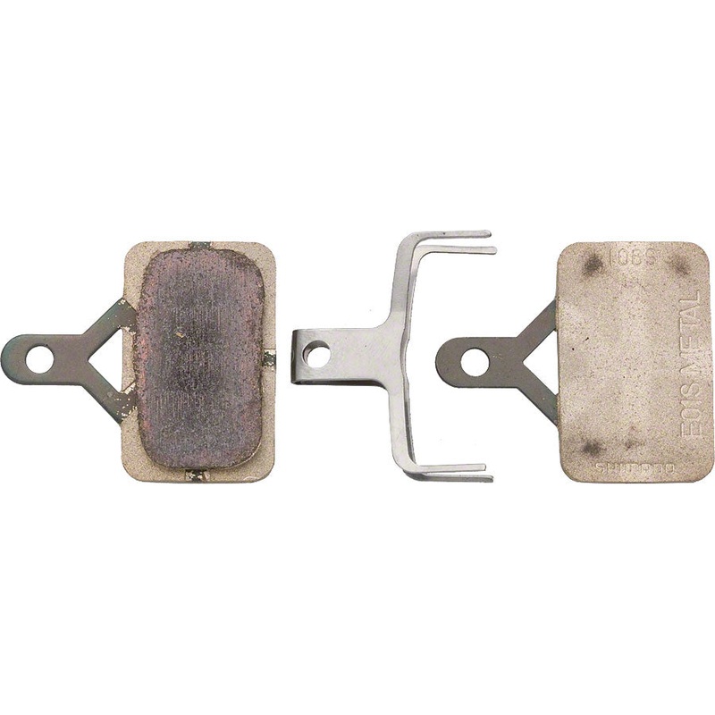 Shimano E01S Metal Disc Brake Pads and Spring for Deore BR-M575 BR- M486 BR-M485 BR-M446 BR-M445 Calipers. Shimano E01S Metal Disc Brake PadsFits BR-M575 BR-M486/485/446/445Sintered Metal pad with consistent high stopping power in wet or dry conditions and