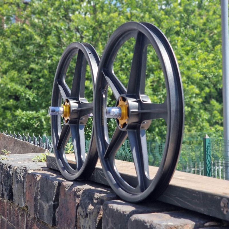 The Skyway Graphite is part of BMX folk-lore. Originally made to be lighter weight forthe Skyway team and sponsored riders, made from Graphite with their disctinctivegold flanges they used Campagnolo hubs, these weren’t even available to buy at any price. Now remade by Skyway in limited numbers the Graphites are updated with sealed bearings.