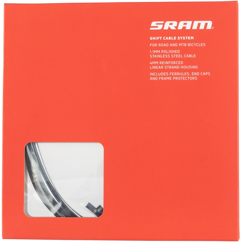 Stainless steel cables are extruded to provide a smooth low-friction surface.Cable length:2300Stainless steel cablesAluminum ferrules SRAM Road/MTB Derailleur Cable & Housing Set UPC: 710845856662