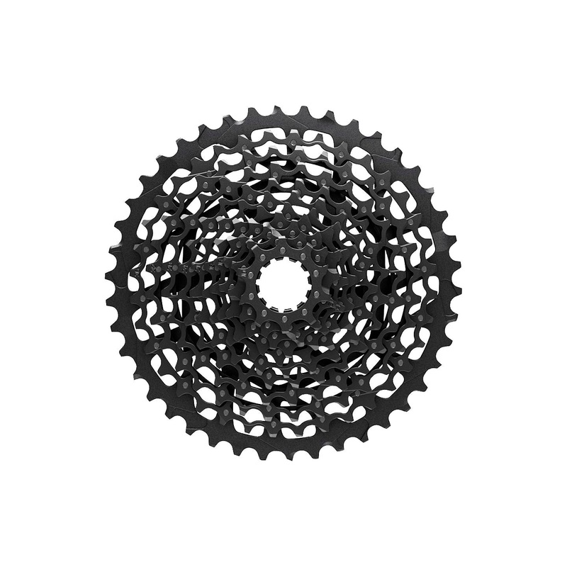 SRAM XG-1175 Cassette – 11 Speed 10-42t Black For XD Driver Body. The SRAM XG-1175 cassette is light durable and equipped with SRAMs super wide 10-42t gear range thats a perfect fit for any ride. FULL PIN technology uses ten lightweight stamped steel cogs and one 42t aluminum cog held together with 123 high-strength stainless steel pins.