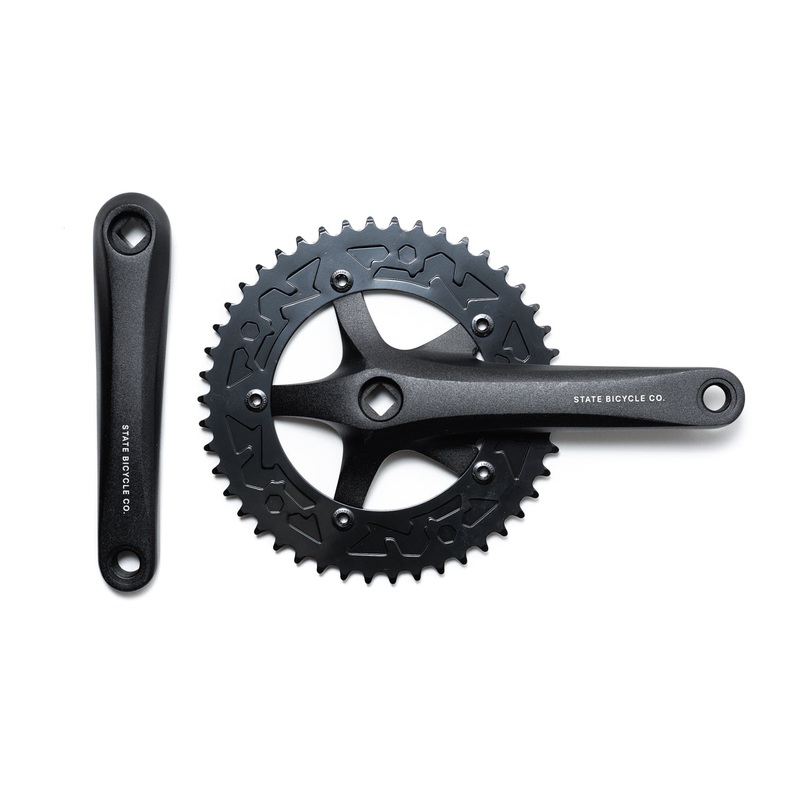 This 3-piece 3D forged alloy Crank Set features a 1/8" - 46 tooth chainring. Available in a black or silver finish.[FEATURES]TOOTH COUNT:46CHAINRINGBCD:130CRANK ARM LENGTH:170mmBottom Bracket NOT Included (Square Taper Needed)Risk-FreePurchase - State Bicy