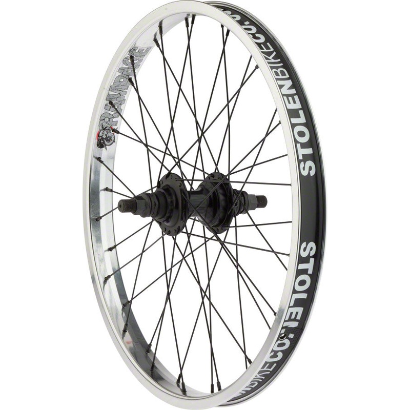 The Rampage rear wheel features a sealed bearing hub, 14mm axle and a Rampage double-walled rim.Includes Stolen PVC rim stripCassette Body Type: Single Cog DriverDefined Color: SilverHub/Brake Compatibility: Rim BrakeISO Diameter: 406 / 20" BMXRear Axle: 1