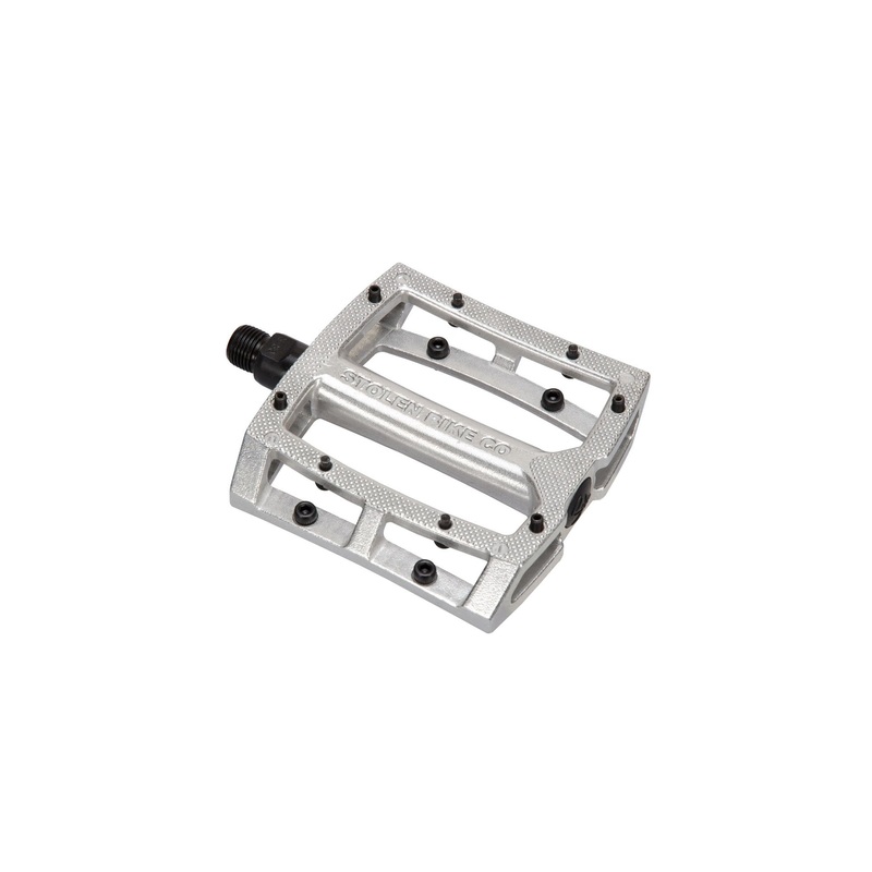 FEATURES:Large platform with a knurled concave shape. Low profile die cast aluminum body with 8 replaceable steel pins per side. Recessed end to prevent damage to bearing cover. Sealed Bearings.SPINDLE:Chromoly steel with 15mm wrench flats & 6mm hex broach