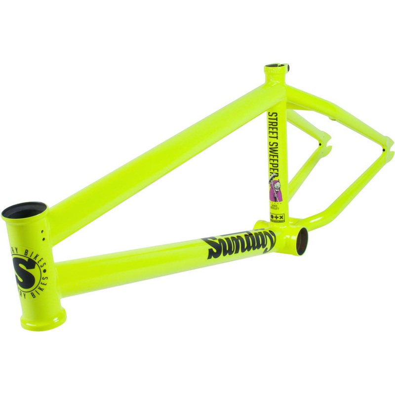 Sunday Street Sweeper BMX Frame - 20.5" TT Flourescent Yellow. Jake Seeleys signature frame is designed to complement his progressive technical street riding. The Street Sweeper evolves directly from Jake Seeleys original Broadcaster frame by using shorter