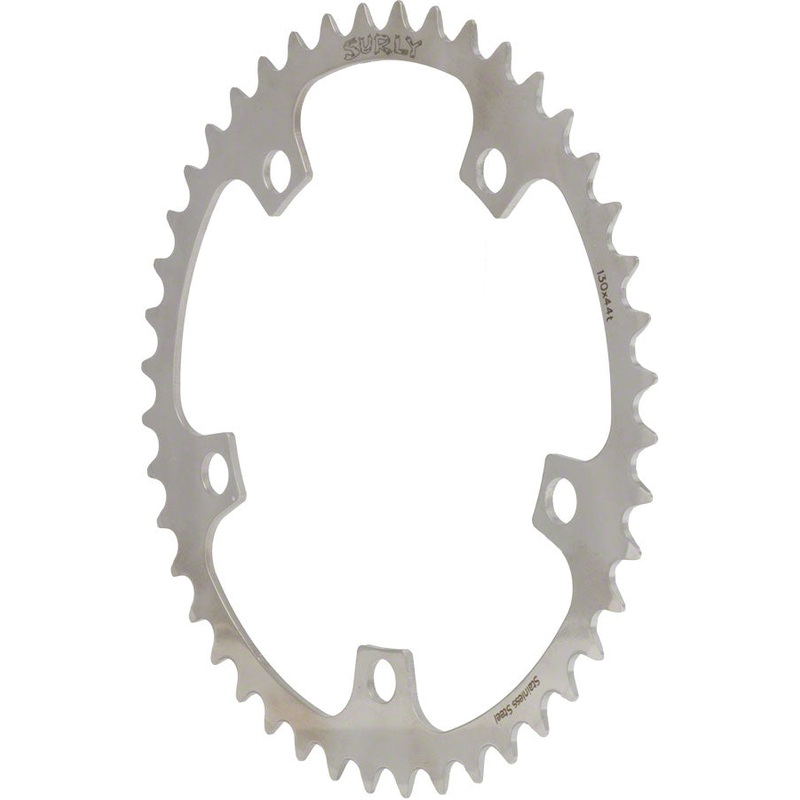 Surly Stainless 5-bolt ChainringsNo ramps or shift gatesSurly rings paired with 9 speed chains will have a tight fit. No compatibility with 10 or more speed drivetrainsMade from 304 Stainless SteelTooth Count: 38Ring Position/Type: SingleDrivetrain Speeds: