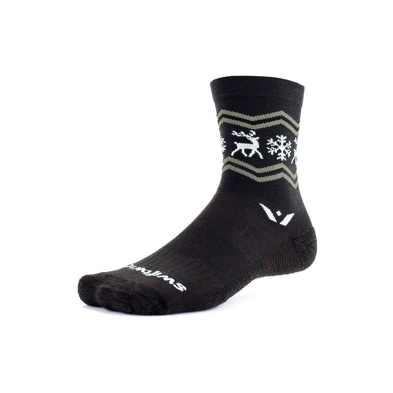 Swiftwick Vision Five Winter Elk Socks - 2020 You can almost smell the wood burning in the fire and a mug of hot chocolate in your hand - inspired by the adventures of mountain-town life, our VISION Winter Collection combines natural Merino Wool with high-