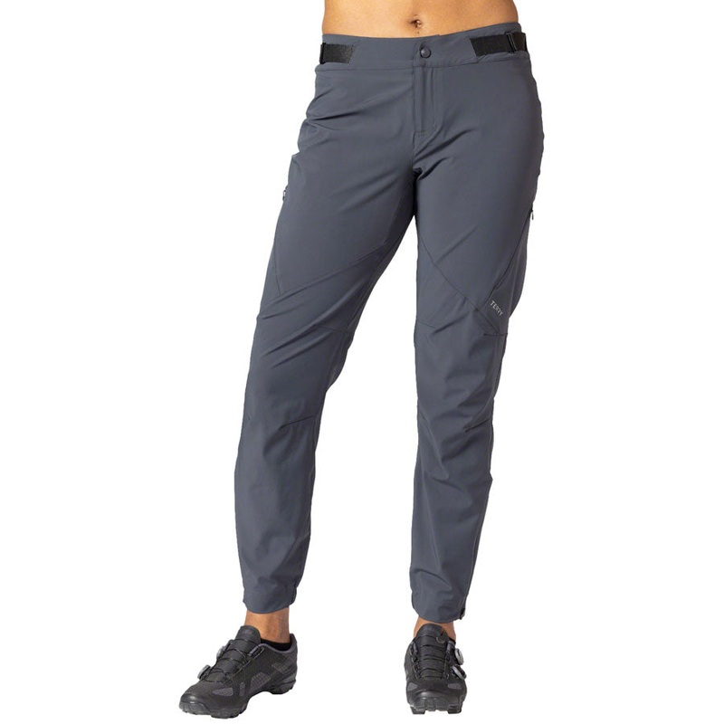 Terry Gravel Pants – Womens Ebony Small. Designed for riders who scoff at the idea of an off-season our new Gravel Pant is perfect for cooler temps and year-round rides where you want/need more coverage. Weve built them out of a lightweight eco-friendly stretch woven twill fabric that moves with you when youre pedaling and protects against trail debris when youre in the rough. Diamond gusset construction through the crotch reduces chafing and the ability to pair up with or without a padded liner lets you use it for hiking climbing camping dog-walking and post-ride cheer. Thoughtfully outfitted with secure pockets ankle zippers articulated knees adjustable waist and elasticized leg cuff. 29 inch inseam.